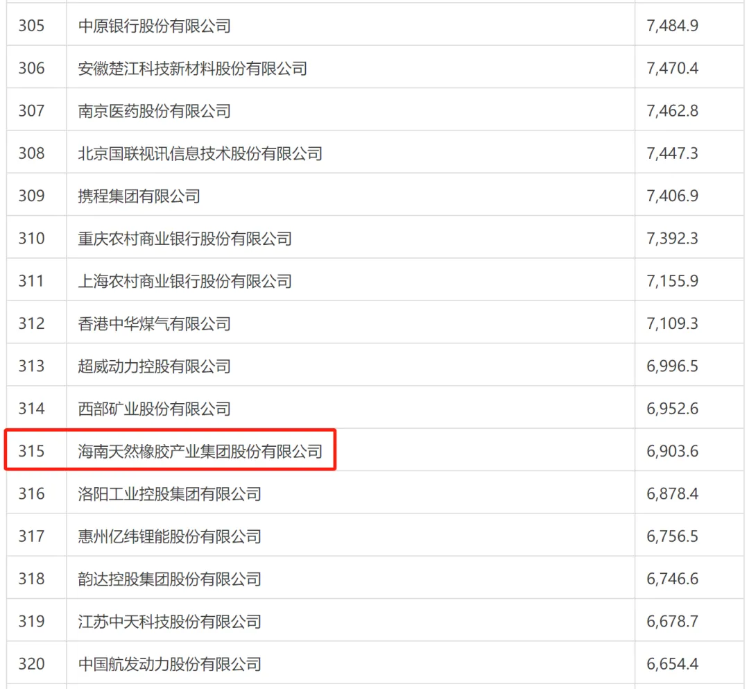 7月22日,財富中文網正式發布2025年《財富》中國500強排行榜。海南橡膠憑借2024年度6903.6百萬美元的營業收入成功上榜,位列第315位。
